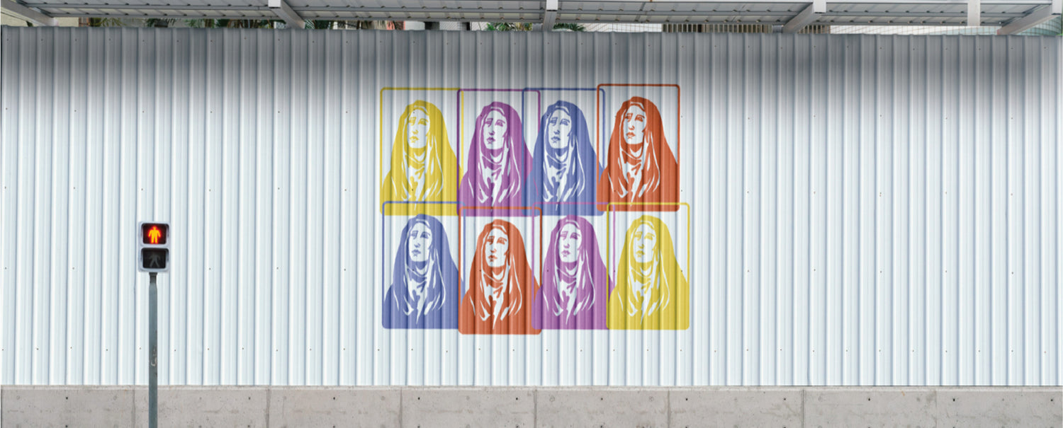 Cria-se o culto por trás de uma personagem, numa comunidade “abençoada” pelo stencil AMEN. Abençoado quem bebe e acredita na palavra, AMEN.